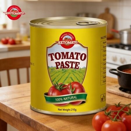 Sebuah kaleng pasta tomat seberat 210 gram berfungsi sebagai bahan dasar kuliner yang sangat diperlukan, menyediakan sarana yang nyaman untuk menanamkan hidangan dengan rasa dan warna tomat yang terkonsentrasi: