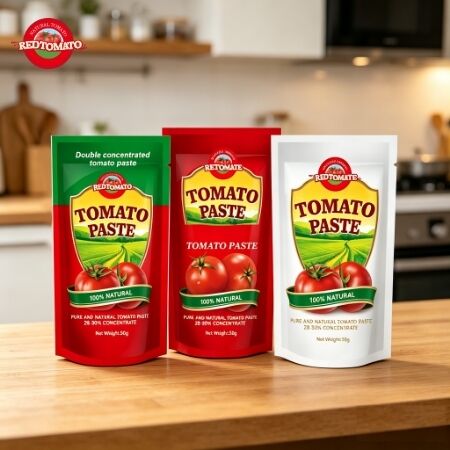 Desain kantong berdiri menawarkan solusi yang nyaman dan ramah pengguna untuk kemasan pasta tomat.Umum digunakan untuk porsi 50g, ia memberikan jumlah yang tepat untuk memasak tanpa membuka wadah yang lebih besar, sambil menjaga kesegaran sampai digunakan.
